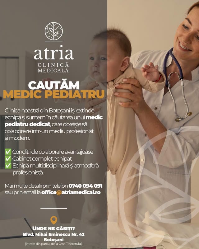 La ATRIA Medical, știm că medicina înseamnă în primul rând oameni dedicați și pasionați de ceea ce fac. Ne dorim să fim mai mult decât o clinică – vrem să fim o echipă unită, în care fiecare medic să se simtă apreciat și sprijinit.